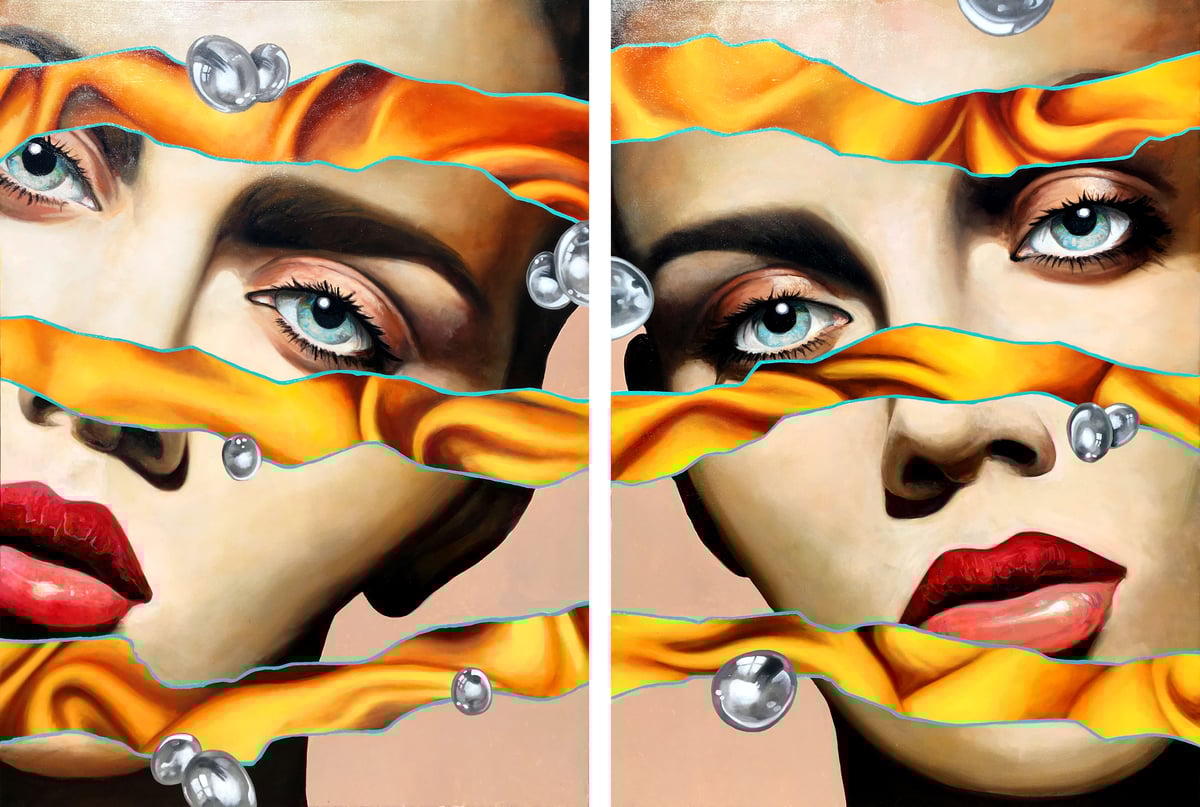 Bold, provocative and sexy is the new language of his passionate paintings. His inspiration is the media and advertising world around us. While his earlier work depicted the gods and goddesses of Antiquity, his new work depicts the icons of our Modern times.