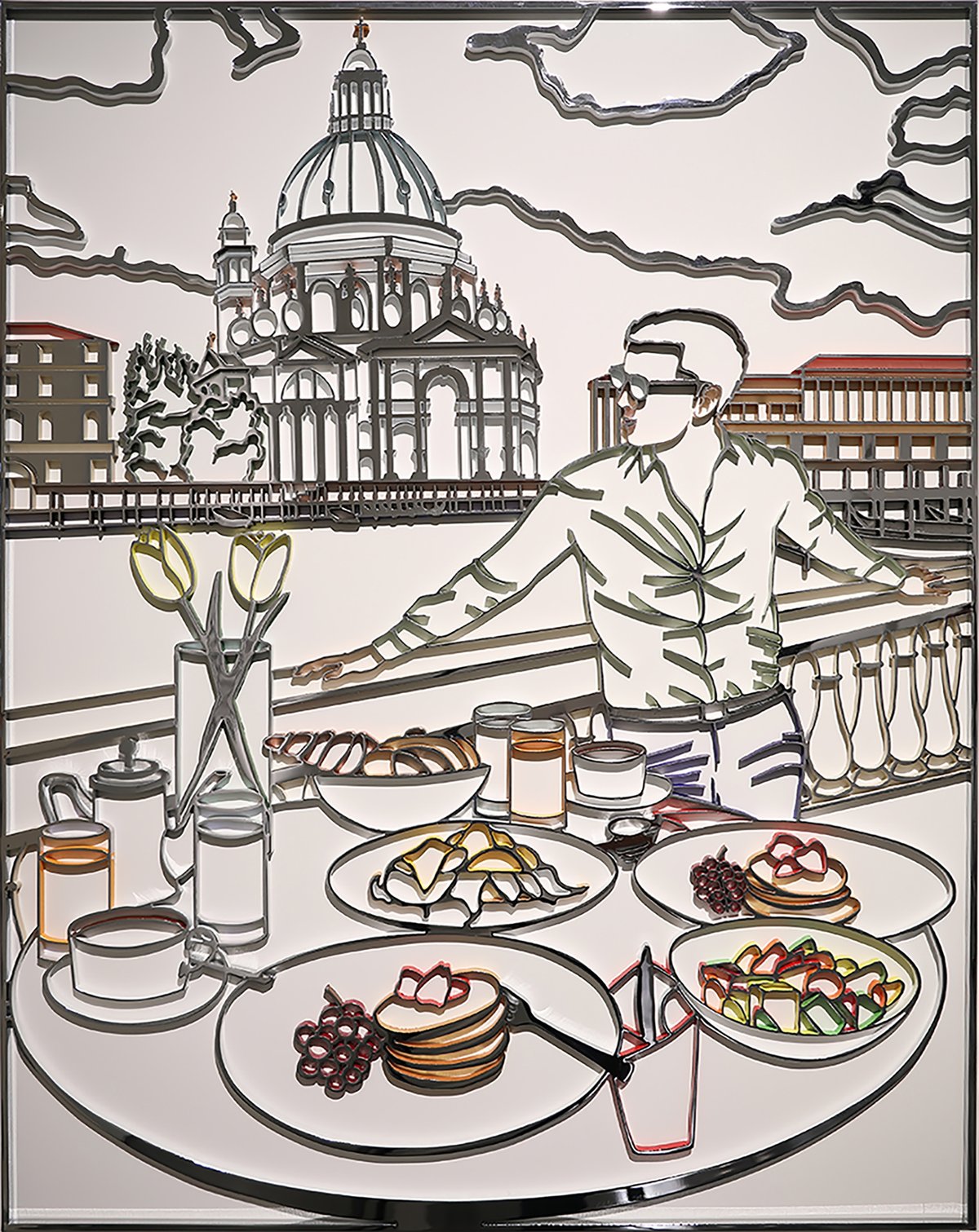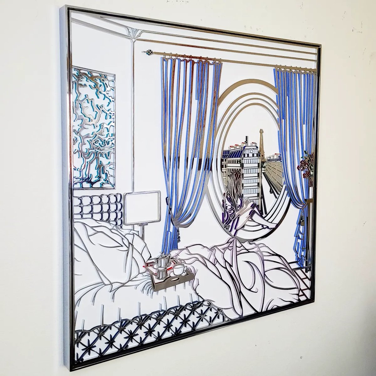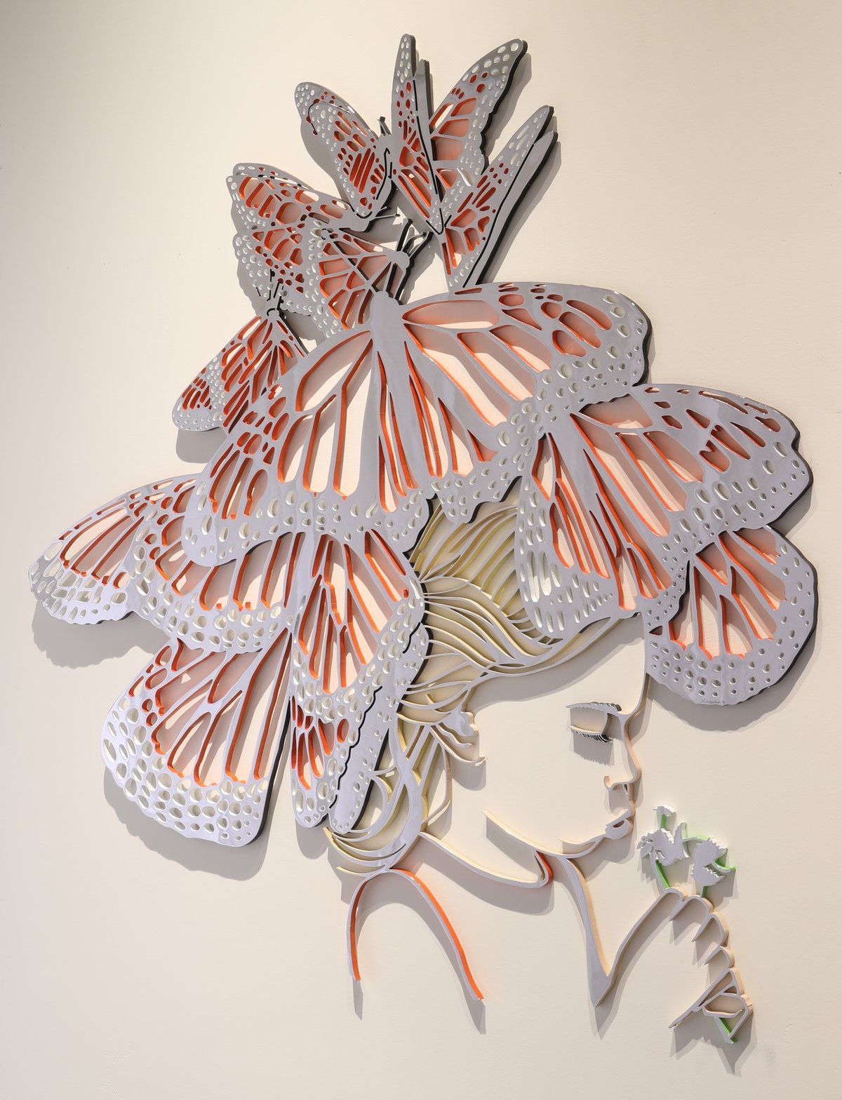 Nicholas creates figurative and abstract imagery using meticulously chromed and hand-painted aluminum cut-outs, resulting in a mesmerizing, multidimensional effect. His work is already in numerous collections, and while his career is off to a stellar start, the best is yet to come.